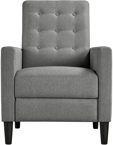 View full detailsYaheetech Fabric Recliner Chair Mid-Century Modern Recliner Adjustable Single Recliner Sofa with Thicker Seat Cushion Tufted Upholstered Sofa with Pocket Spring for Living Room Bedroom Gray