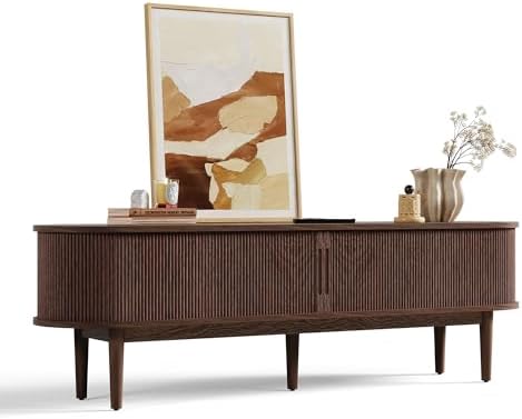 View full detailsLINSY HOME Fluted TV Stand for 75" TV, Mid-Century Modern 70" Entertainment Center with Sliding Tambour Door and Storage Cabinet, Cruved TV Media Console Table for Living Room, Bedroom, Walnut