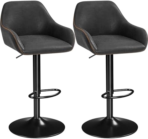 View full detailsYaheetech Bar Stools Set of 2, PU Leather Swivel Counter Height Barstools, Adjustable Bar Chairs with Backrest and Footrest, Kitchen Island Stool for Home Kitchen, Black