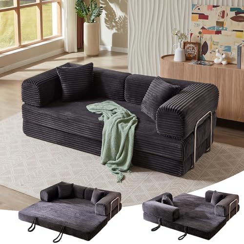 View full details81 Inch Convertible Folding Sofa Bed,Fold Out Floor Sofa Couch with Fixed-Shape Frame,Corduroy Foldable Mattress Cloud Couch for Living Room Bedroom (Dark Grey)