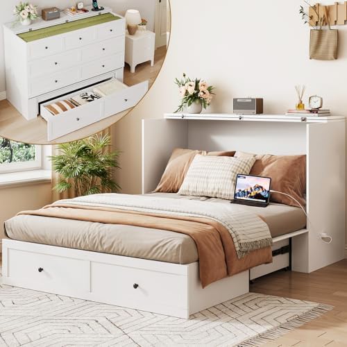 View full detailsFull Size Murphy Bed with Charging Station & Drawer, Full Size Mobile Cabinet Bed Frame, Murphy Chest Bed for Bedroom, Guest Room