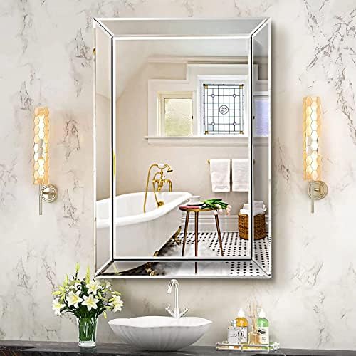 View full detailsPregaspor Wall Mirror for Bathroom, 24" x 36" Rectangular Frameless Vanity Mirror, Polished Beveled for Over Sink
