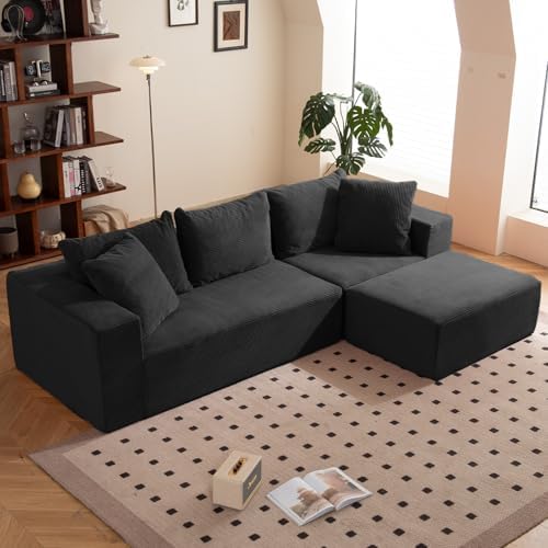 View full detailsModular Sectional Sofa, 108" L-Shaped Boneless Couch with Deep Seat, Corduroy Cloud Couch for Living Room, Bedroom, No Assembly Required, Ship in a Box, Black