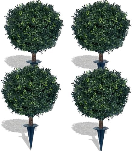 View full detailsArtificial Boxwood Ball Bush 27" Tree BLONYUVC UV Resistance Rated with Spike. Easy to Push in The Ground.Plant Looks Great in a Planter Anywhere. Indoor/Outdoor Decor 4 Pack