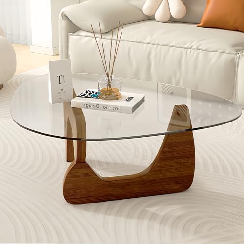 View full detailsModern Glass Coffee Table, 32.3″D×25.6″W×15.8″H-Abstract Unique Mid Century Triangle Center Table for Living Room, Minimalist Middle Tables for Home Office, Wooden Base
