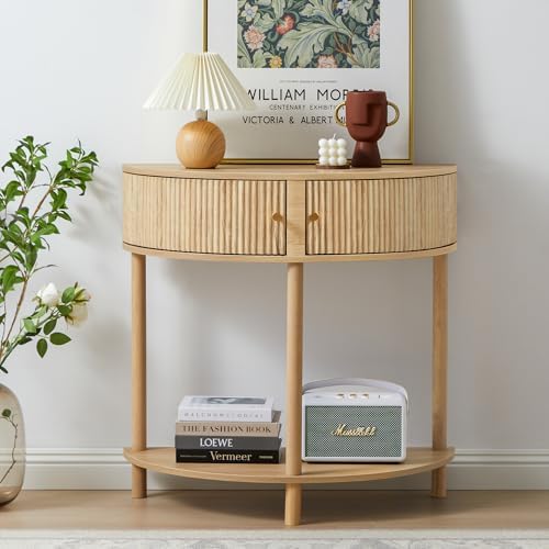 View full detailsFluted Half Moon Console Table, Modern Small Entry Table Sofa Table with Storage, Solid Wood Legs Narrow Entryway Table for Living Room, Hallway, Foyer(Natural)