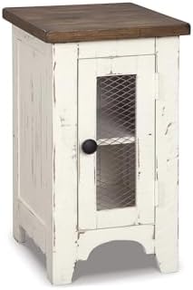 View full detailsSignature Design by Ashley Wystfield Farmhouse Chair Side End Table with Cabinet Door for Storage, White & Brown with Distressed Finish