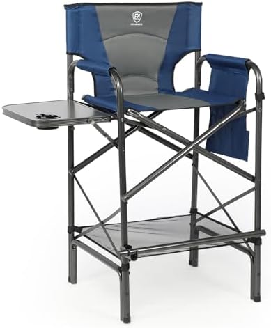 View full detailsEVER ADVANCED Tall Folding Chair 30.7" Seat Height Directors Chair High Foldable Bar Stool for Makeup Artist Face Painting with Side Table Cup Holder and Storage Pocket Supports 350LBS (Blue/Grey)