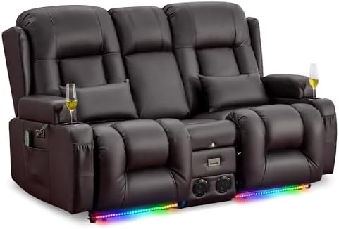 View full detailsURRED Loveseat Recliner Sofa with Massage and Heat, Power Reclining Loveseat Sofa RV Couch with Console, Home Theater Seating with LED Lights, Bluetooth Speaker, USB, Outlets, Faux Leather, Dark Brown