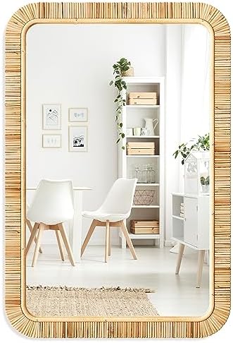 View full detailsBarnyard Designs Rattan Bathroom Mirror – Rustic Farmhouse Style Handmade Wicker Rattan Frame - Boho Mirror for Nursery Wall Décor (24" x 36", Rectangular)