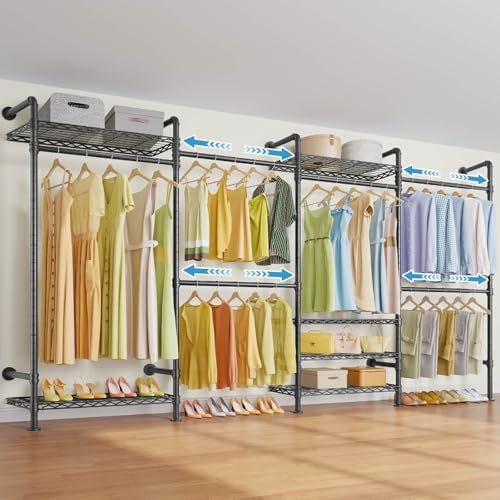 View full detailsTimate F4 Wall Mounted Clothes Rack Industrial Pipe Clothing Rack for Hanging Clothes, Expandable Garment Rack Heavy Duty Wardrobe Closet Organizer and Storage, Black Adjustable Industrial Closet Kit