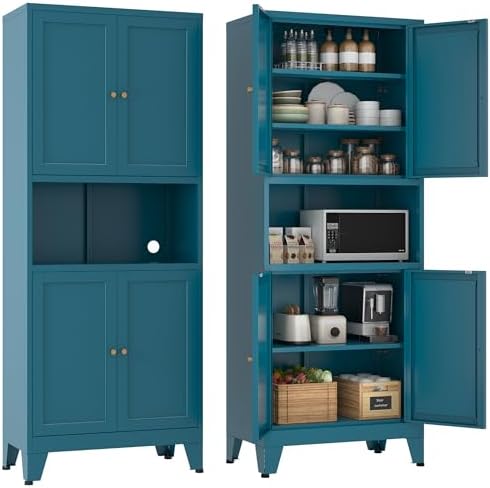 View full details69''Metal Pantry Storage Cabinet with 4 Doors & 3 Adjustable Shelves,Kitchen Pantry Cabinet with Microwave Shelf,Microwave Stand with Storage for Kicthen,Dining Room,Bathroom Blue