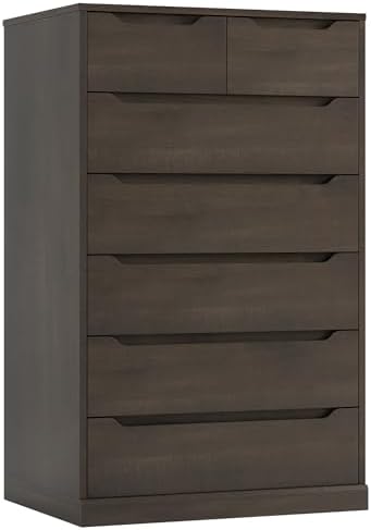 View full detailsHITHOS 51" Tall 7 Drawers Dresser, Modern Dresser, Wood Dressers & Chests of Drawers with Cut-Out Handles, Upright Drawer Chest, Accent Vertical Dressers Storage Cabinet for Living Room, Dark Brown