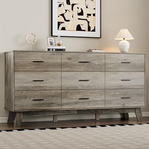 View full detailsDresser for Bedroom with 9-Drawer, 59" Wide Modern Chest of Drawers with Metal Handles, X-Shape Base & Adjustable Center Leg, Anti-Tip Closet Organizers and Storage