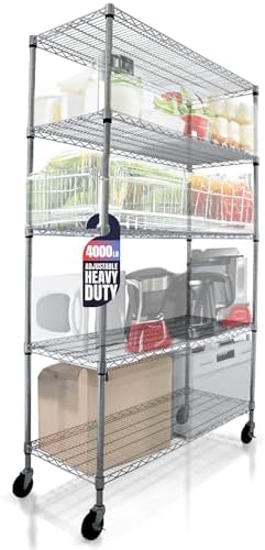 View full details4000 LBS Heavy Duty Wire Rack 48 x 18 x 76, 5-Tier NSF Commercial Rolling Rack with Wheels, Chrome Metal Shelving Unit for Garage, Kitchen, Warehouse, Adjustable Storage Shelf, Crescent