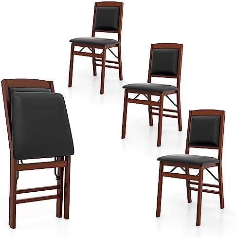View full detailsGiantex Folding Dining Chairs Set of 4, Foldable Wood Kitchen Chairs with Padded Seat, Solid Wood Frame, Max Load 400 Lbs, No Assembly Easy to Store Wooden Dining Chairs for Apartment, Small Space