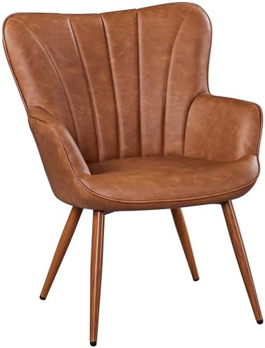 View full detailsYaheetech PU Leather Armchair, Modern Accent Chair with Metal Legs, Comfy Upholstered Barrel Chair for Living Room Bedroom Vanity Room, Brown