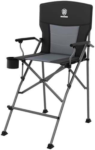 View full detailsEVER ADVANCED Tall Folding Chair 31", Portable Directors Chair, Bar Height Camping Chair with Carry Bag and Footrest, Armrest, Heavy Duty Supports 300 Lbs Grey