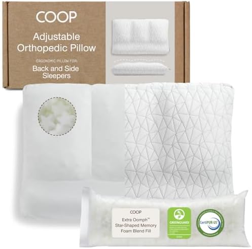 View full detailsCoop Home Goods Adjustable Orthopedic Pillow King, Ergonomic Cervical Neck Support, Memory Foam Pillows for Side & Back Sleepers, Breathable, Washable Cover, GREENGUARD & CertiPUR-US Certified