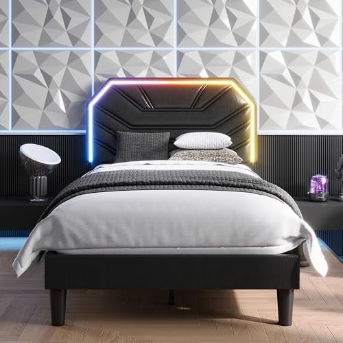 View full detailsLIKIMIO Twin Bed Frames with LED Light Headboard, Upholstered Modern Cama Twin Platform Bed Frame with Heavy Duty Supports, No Box Spring Need, Noise Free, Easy Assembly, Black