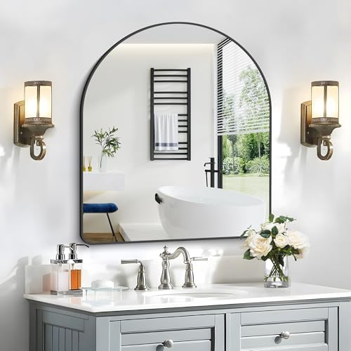 View full detailsFORBATH Arched Bathroom Mirror 30x36 Inch, Bathroom Mirror Wall Mounted Modern Black Aluminum Frame Decor Dresser Mirror for Bedroom Living Room Entryway, Hanging or Leaning Against Wall