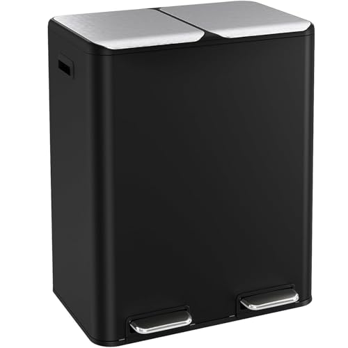 View full details16 Gal (2 x 30 L) Dual Trash Can, Stainless Steel Kitchen Garbage Bin, Recycle Dustbin with Odor Control Box, Soft-Close Lid, Inner Buckets, Side Handle, Step Pedal, for Home Office