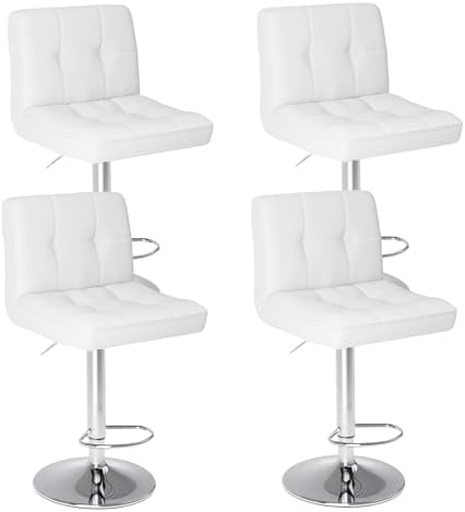 View full detailsSweetcrispy Bar Stools Set of 4, Armless PU Leather Adjustable Swivel Barstools, Hydraulic Kitchen Counter Height Thickened Seat Cushion Square Island Countertop Chairs with Back - Modern White