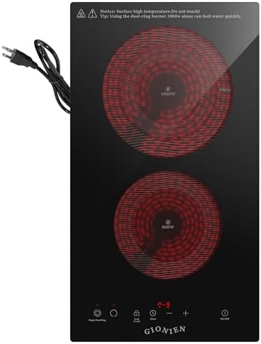View full detailsElectric Cooktop 2 Burners 110V~120V, 12'' Plug in Electric Stove Top,Countertop or Built-in,Ceramic Glass,Sensor Touch Control,Timer,9 Power Levels,Portable,1800W