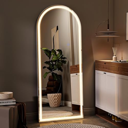 View full detailsVooBang 64"x21" LED Mirror Full Length - Arched Floor Body Mirror with Dimmable Lights - 3 Color Modes, Standing Leaning Wall Mounted for Bedroom, Dressing Room