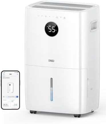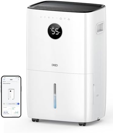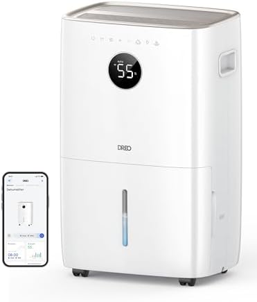 View full detailsDreo 110-Pint Smart Dehumidifier for Basement, 4500 Ft² for Large Room, 2 Gallon Water Tank, Auto/Comfort/Constant Mode Dehumidifiers for Home, Bedroom, Bathroom, with Drain Hose, White, 711S