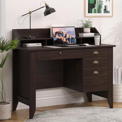 View full details4 EVER WINNER Small Desk with Drawers, Office Desk with File Drawer and Monitor Stand, Writing Desk Study Table for Small Spaces, Espresso
