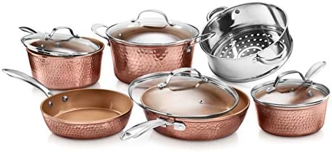 View full detailsGotham Steel Hammered Collection Pots and Pans 10 Piece Premium Ceramic Cookware Set – with Triple Coated Ultra Nonstick Surface for Even Heating, Oven, Stovetop & Dishwasher Safe