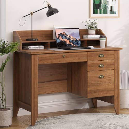 View full details4 EVER WINNER Wooden Desk with Drawers, Small Desk with Monitor Stand and File Drawe, Office Desk with Drawers for Bedroom Small Spaces, Walnut