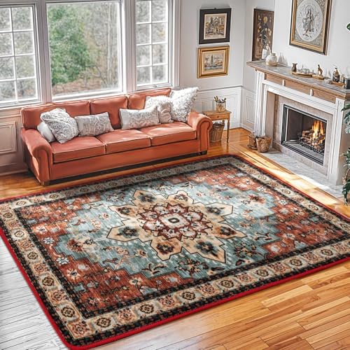 View full detailsLBRO2M Boho Area Rug 9X12 Washable Rugs for Bedroom Low Piles Indoor Carpet, Non Slip Soft Rug for Living Room, Dining Room, Red Rug Foldable Pet Friendly Area Rugs Stain Resistant (9'X12' Red)