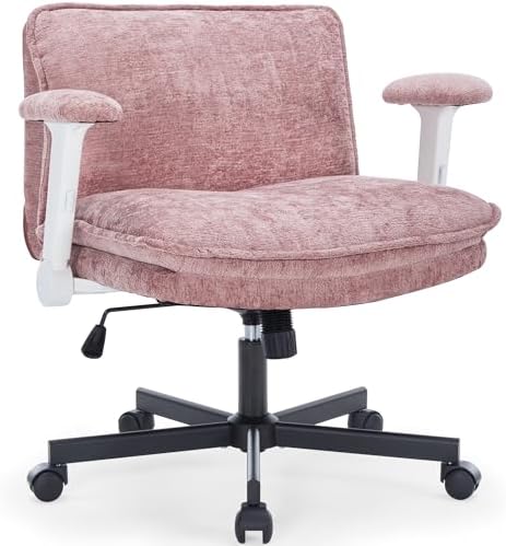 View full detailsCross Legged Office Chair with Wheels and Adjustable Flip-Arms, Criss Cross Desk Chair with Thick Cushion, Wide Seat Chair for Home Office, Apartment, Bedroom, Pink