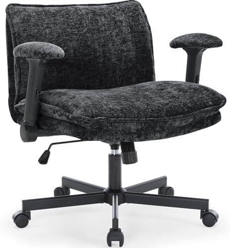 View full detailsCross Legged Office Chair with Wheels and Adjustable Flip-Arms, Criss Cross Desk Chair with Thick Cushion, Wide Seat Office Chair for Home Office, Apartment, Bedroom, Black