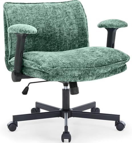 View full detailsCross Legged Office Chair with Wheels and Adjustable Flip-Arms, Criss Cross Desk Chair with Thick Cushion, Wide Seat Chair for Home Office, Apartment, Bedroom, Green
