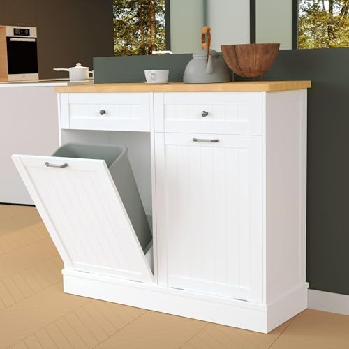 View full detailsBetterhood Tilt Out Trash Cabinet 10 Gallon Wooden Free Standing Laundry Sorter Cabinet,Recycling Cabinet with Hideaway Drawer,Tilt Out Trash Cabinet Can Bin Kitchen