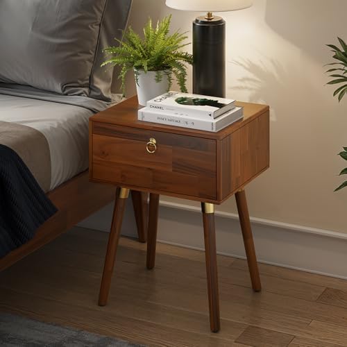 View full detailsBme Alden Solid Wood Nightstand/Side Table/End Table, Fully Assembled, with 1-Drawer for Mid Century Bedroom and Living Room, (12mm), Caramel