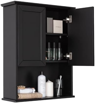 View full detailsBlack Bathroom Wall Cabinet 23x29 inch Wooden Bathroom Medicine Cabinet with 2 Doors and Adjustable Shelf, Wall Mounted Cabinet Over Toilet Storage Cabinet