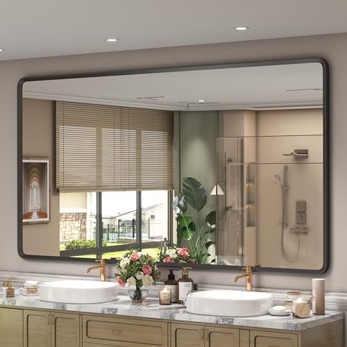 View full details66x36 Inch Black Matte Framed Mirror for Bathroom, Rounded Rectangle Mirror, Bathroom Vanity Mirror for Wall, Anti-Rust, Shatterproof (Horizontal/Vertical)