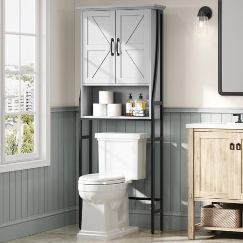 View full detailsOver The Toilet Storage Cabinet, Over Toilet Bathroom Organizer with Barn Doors Above Toilet Storage Cabinet Spacesaver Rack Behind Toilet Bathroom Organizer (Gray)