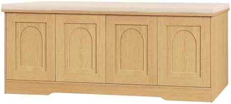 View full detailsDINZI LVJ Shoe Bench, Entryway Storage Bench with Doors, Cushion, 2-Tier Shoe Rack with 8-Cubby, 47.2”L x 13.8”W Shoe Organizer Cabinet, Adjustable Shelf, Living Room, Bedroom, Natural