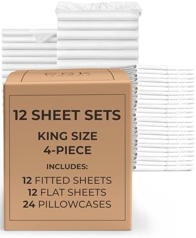 EXCEPTIONAL VALUE: This 12-pack of King size bulk sheet sets includes 12 complete sets (Each set contains 2 pillowcases, 1 flat sheet and 1 fitt...