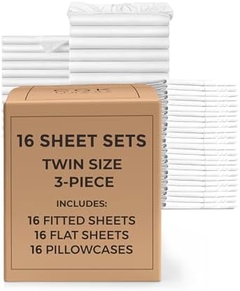 EXCEPTIONAL VALUE: This 16-pack of Twin size bulk sheet sets includes 16 complete sets (Each set contains 1 pillowcase, 1 flat sheet and 1 fitte...