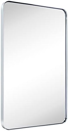 View full detailsGRACTO 24x36'' Chrome Metal Framed Bathroom Mirror for Wall in Stainless Steel Rounded Rectangular Bathroom Vanity Mirrors Wall Mounted