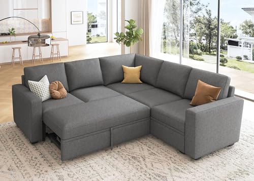 View full detailsHONBAY Sectional Sleeper Sofa with Pull Out Bed, L Shaped Couch with Storage Seat, Modular Sectional Couches for Living Room, Dark Grey