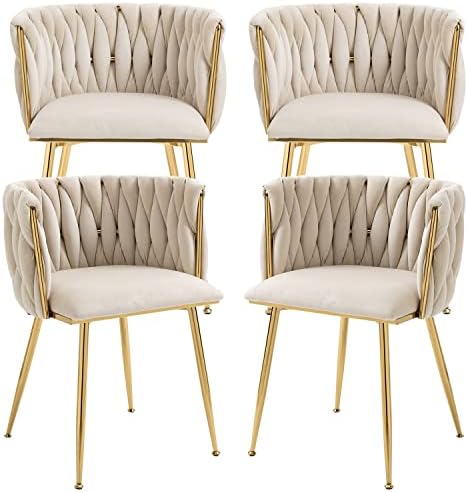 View full detailsNrizc Velvet Dining Chairs Set of 4, Woven Upholstered Dining Chairs with Gold Metal Legs, Modern Accent Chairs for Living Room, Dining Room, Kitchen