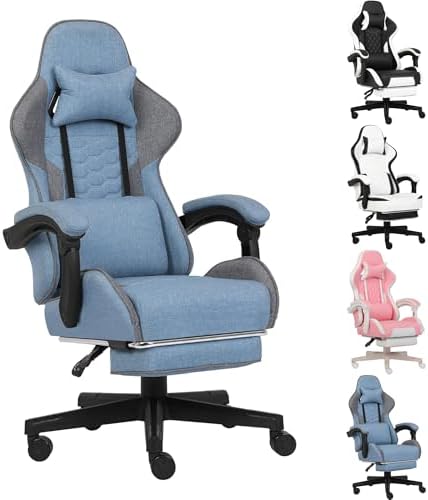 View full detailsGaming Chair, Computer Office Chair with Footrest, Linkage Armrests and Lumbar Support, High Back Ergonomic Gamer Chairs for Adults, Blue Fabric