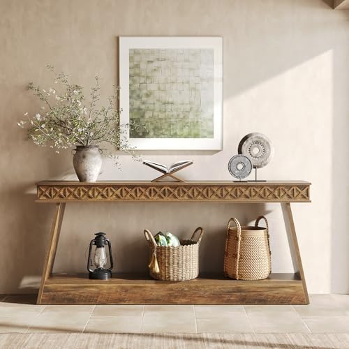 View full detailsLITTLE TREE 70.87" Long Farmhouse Console Table, 2-Tier Shelf Narrow Accent Entryway Sofa Table for Living Room, Behind Couch, Hallway - Light Brown